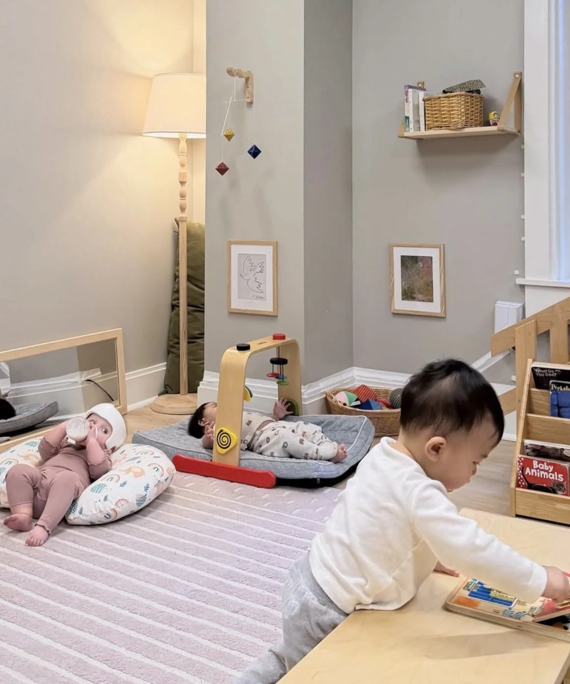 Our Nido community has 3 trained Guides that gently support the growth and development of 8 students between the ages of 6 weeks to 18 months. Our beautiful classroom offers light-filled, open spaces for each child to work and play, with materials and furniture designed just for them.